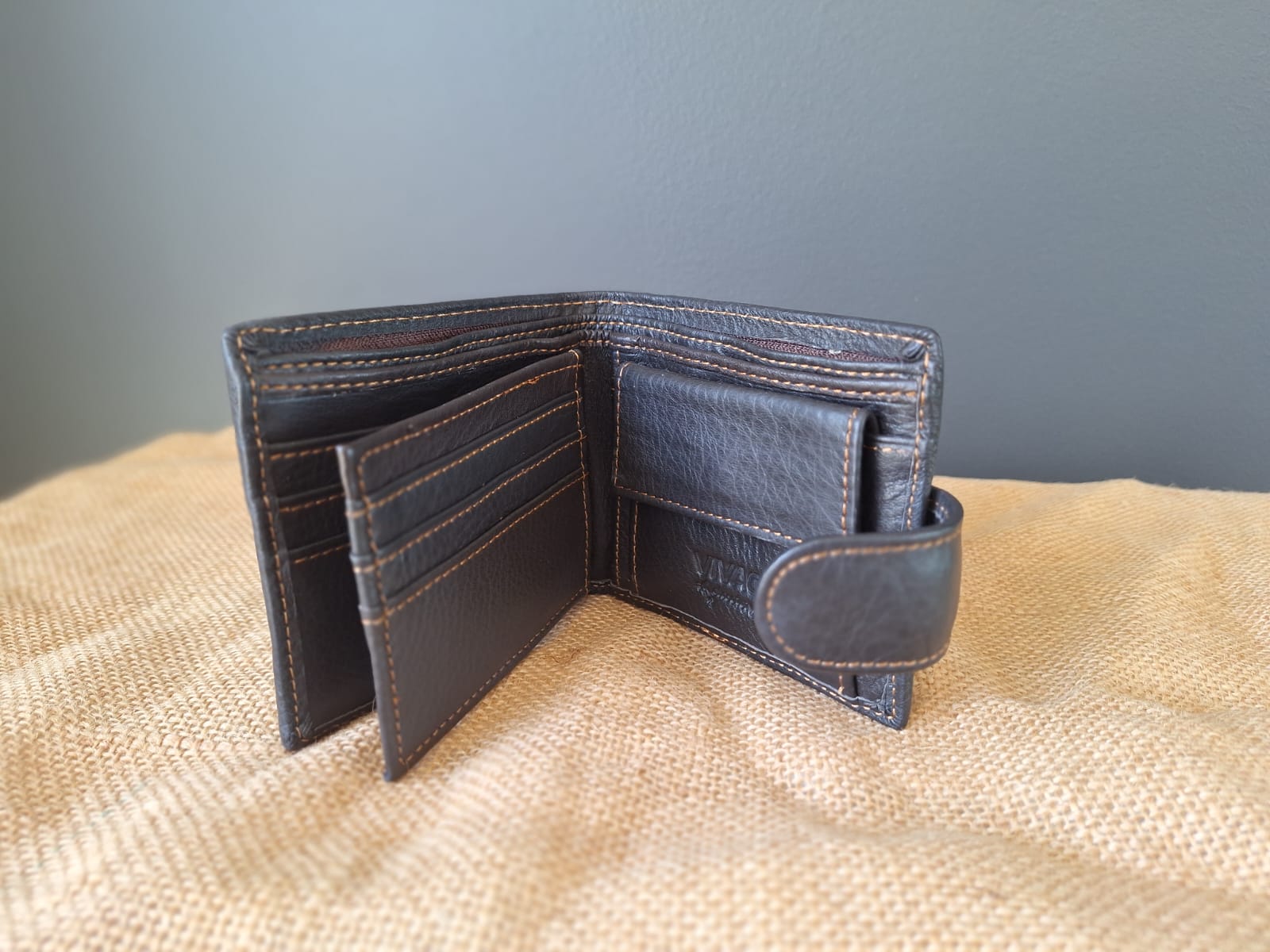 Vivace dark brown genuine leather men’s wallet with zip detail